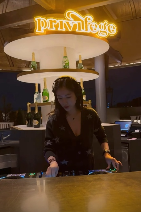 사진과 영상 속 류화영은 루프탑 바에서 디제잉을 하는 모습이었다.