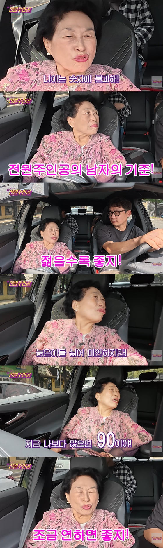 전원주는 결혼정보회사로 향하는 길에서 "나이 먹어도 여자는 여자다. 나이는 숫자에 불과하다. 버스를 타도 옆에 멋있는 남자면 거기 앉게 된다. 나이는 아무것도 아니"라고 말했다.