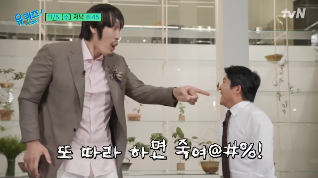 이어 MC 유재석이 "홍만 씨가 '유 퀴즈' 나온다고 인스타그램에 올렸다고 하던데"라고 묻자, 최홍만은 조세호를 향해 "너는 왜 '좋아요' 안 눌러"라고 따졌다. 조세호는 "형도 내 거 안 누르지 않냐"고 맞받아쳤고, 최홍만은 "내가 형이잖아"라고 버럭 화를 내 폭소를 자아냈다.