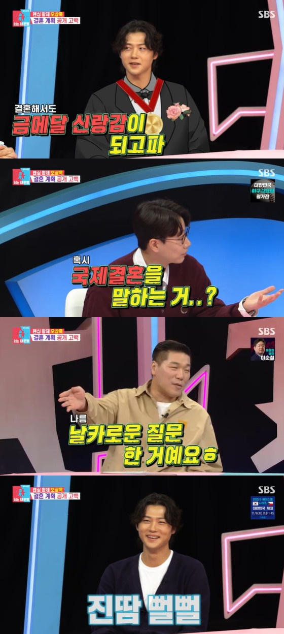 그러자 방송인 조우종은 "결혼이 '국제결혼'을 말하는 거냐"라는 돌직구로, 오상욱의 열애설을 간접적으로 언급했다. 이에 MC 서장훈도 "나름 날카로운 질문을 했다"라고 거들었다.