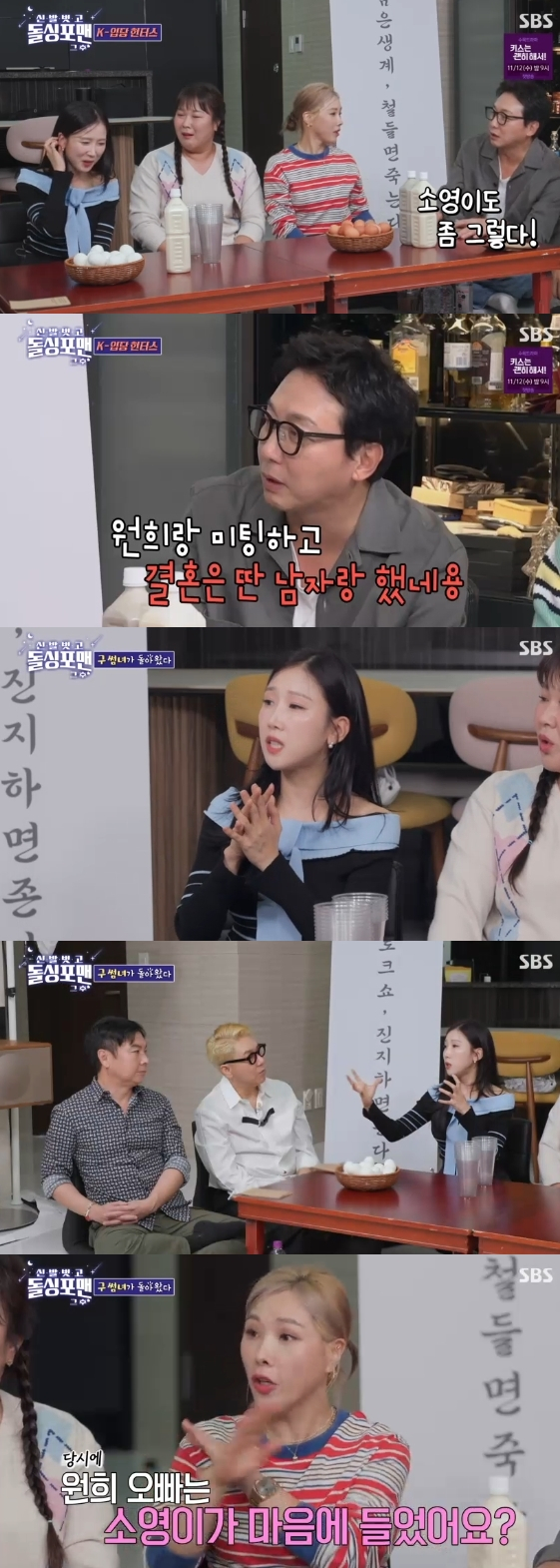 그러자 박소영은 "그때 오빠가 저를 놓친 거다"라고 받아쳐 웃음을 안겼다. 이어 "당시 솔로였다. 촬영 끝나고 피드백이 있거나 번호라도 물어봐야 하는데 그런 게 없었다"라고 설명했다. 이에 신봉선은 "원희 오빠는 소영이가 마음에 아예 안들었냐"라고 물었고, 이상민은 "그때는 지금보다 눈이 높았다. 예쁘고, 똑똑해야 한다"라고 말해 박소영을 분노케 했다.