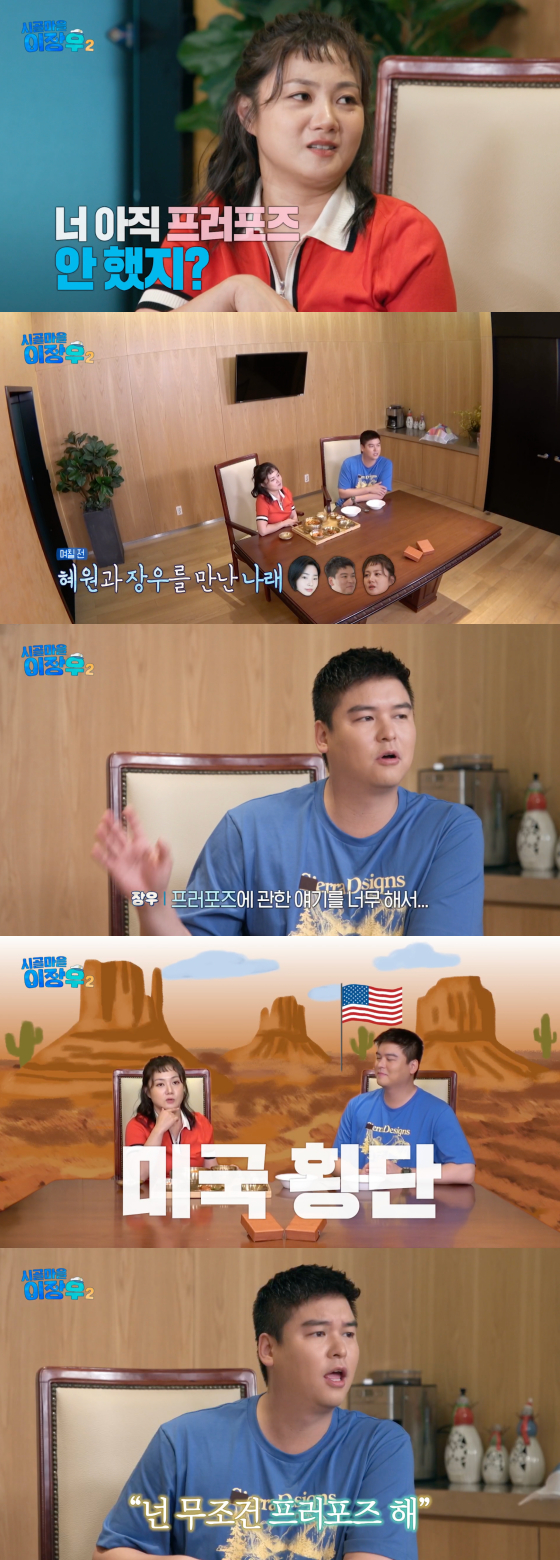 이에 이장우는 "며칠 전에 (조)혜원이와 함께 (박)나래 누나를 만났는데 누나가 프러포즈 얘기를 너무 많이 하더라"고 볼멘소리를 했다.