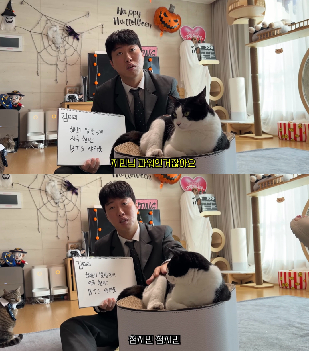 방탄소년단(BTS) 지민이 유튜브 인기 고양이 '첨지'와 만들어낸 '콜라보'가 전 세계 SNS를 뜨겁게 달궜다.지민은 지난 10월 13일 위버스 생일 라이브 중 "요즘 쇼츠를 자주 본다"며 고양이 영상을 잠깐 시청했는데, 팬들은 짧은 소리만 듣고 영상의 주인공을 찾아냈다. 그 속에 등장한 이는 다름 아닌 유튜버 '언더월드'의 고양이 첨지였다.