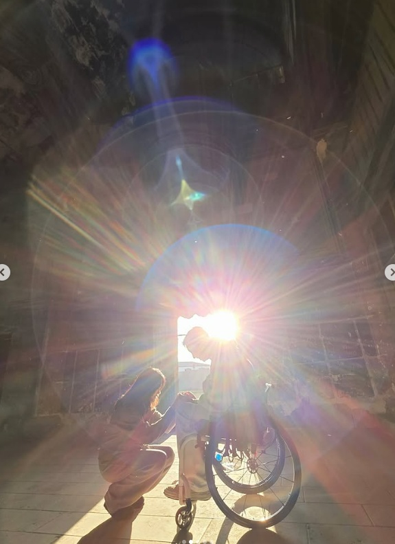그는 박위가 탄 휠체어를 끌고 먼 길을 떠나며 현지의 교회에 방문하고 기도하는 모습을 보였다.