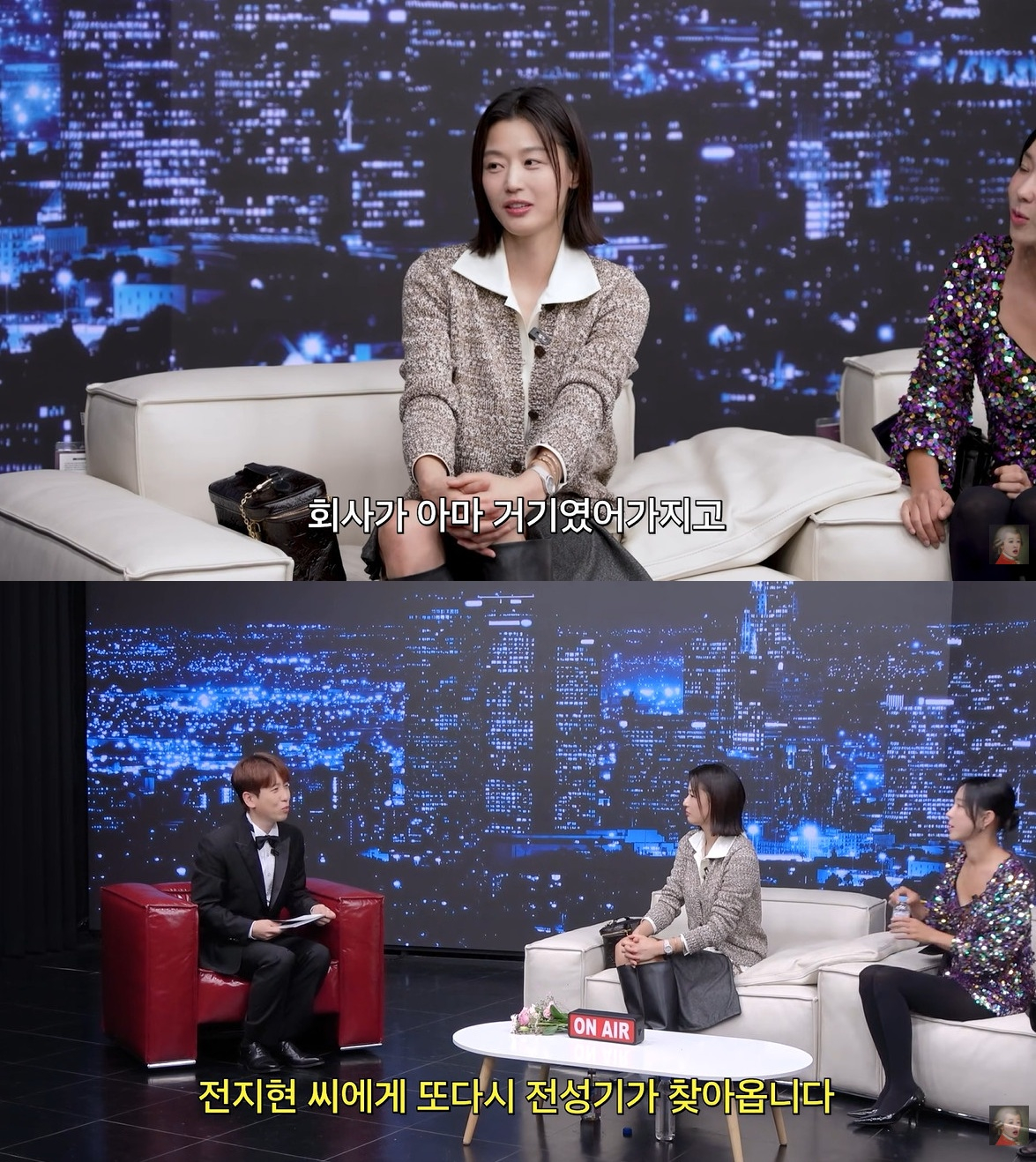 남창희가 "남편분 별명이 을지로 장동건이었다던데"라고 묻자, 전지현은 "회사가 그쪽에 있었다. 난 첫눈에 반했다"라고 말해 훈훈한 분위기를 자아냈다.