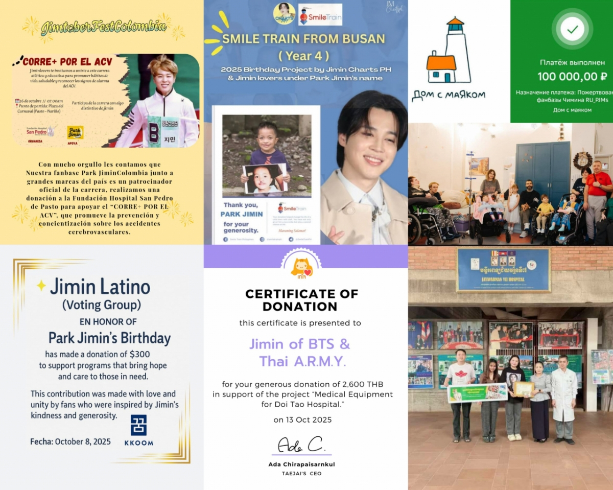 태국 팬들은 지민 생일 축하 행사 'Jimin BDay In Chiangmai 2025'에서 모금된 기금을 도이타오(Doi Tao) 병원 의료 장비 지원 프로젝트에 기부하였고, 캄보디아 팬들은 쿤타보파(Kuntha Bopha) 어린이 병원에 기부금을 보내는 등 2025년 짐토버를 의미 있고 기억에 남는 시간으로 만들었다.