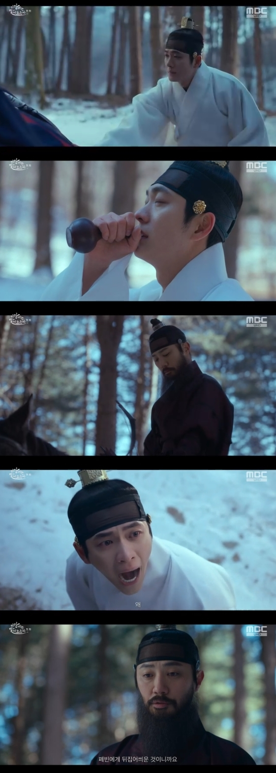 이날 이강은 폐빈의 무덤을 찾아 자신의 곤룡포를 덮어주며 눈물을 흘렸다. 그가 먼저 간 빈궁을 따라가겠다며 독약을 마시려던 찰나, 좌의정 김한철(진구 분)이 나타나 그의 죽음을 막았다.