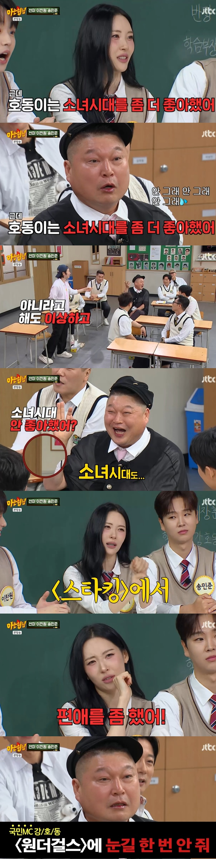 이 가운데 강호동은 "난 다 진짜 똑같이 좋았다"라고 했고, 선미가 "호동이가 소녀시대를 좀 더 좋아했다. '스타킹'에서 약간 편애를 했다"고 말해 눈길을 끌었다.