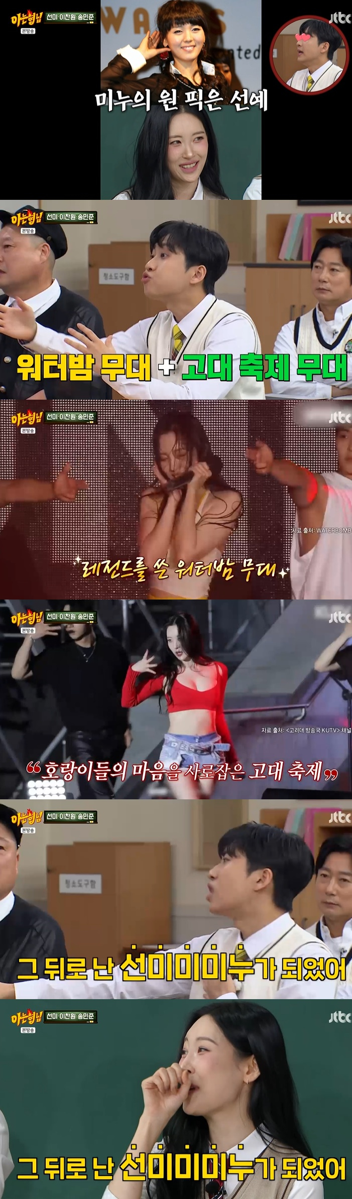 미미미누는 자신의 최애 멤버로 "나는 선예였다"라면서도 "선미가 워터밤이랑 고려대 축제에 나와서 굉장히 화제가 되지 않았냐. 그 뒤로 나는 '선미미미누'가 됐다"라고 너스레를 떨었다.