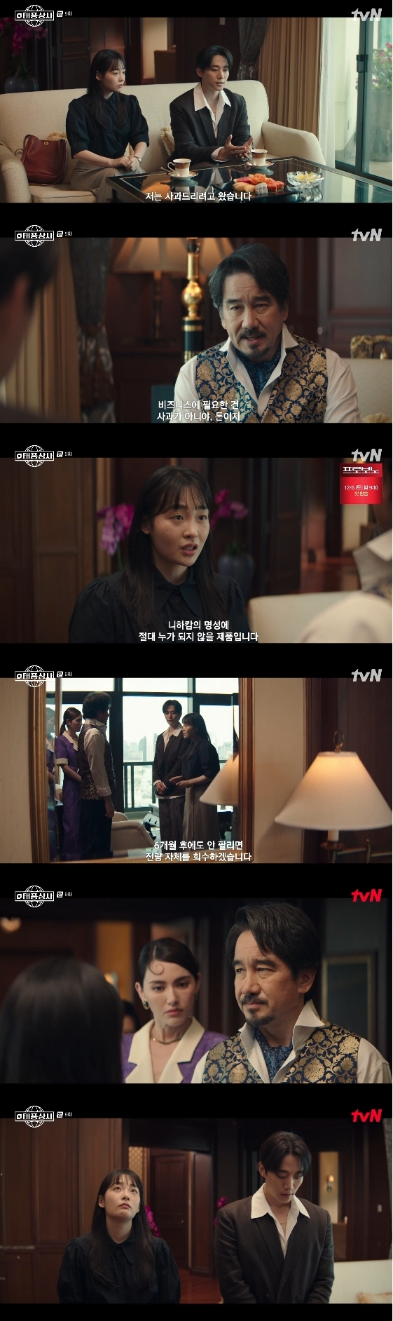 그러나 회장은 "사과는 필요 없다. 비즈니스에 필요한 건 사과가 아니라 돈이다"라고 냉담한 태도를 보이며 뒤돌아섰다.
