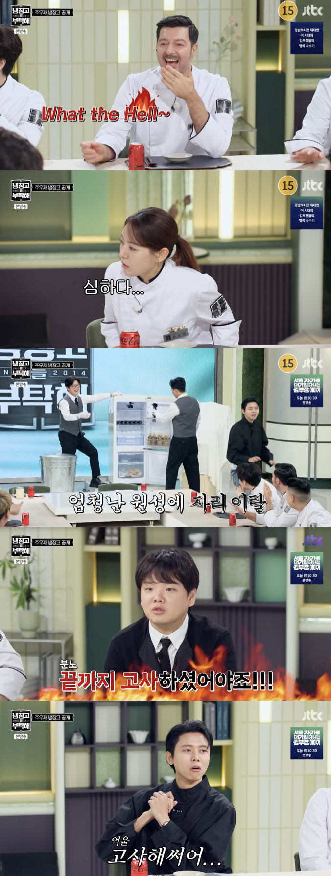 그러나 실제로 공개된 그의 냉장고는 캐리어만 한 크기에 재료라고 할 만한 것이 거의 없었다. 주우재는 "원래 큰 냉장고를 썼는데 너무 빈 공간이 많아서 작은 냉장고로 바꿨다"고 해명했다.냉장실에는 음료수와 잼 몇 개, 냉동실에는 계란빵·절편·아이스크림·초코빙수만 덩그러니 들어 있었다. 이 믿기 힘든 수준의 '빈약 냉장고'에 셰프들은 탄식을 금치 못했고, 함께 출연한 곽튜브는 "끝까지 고사하셨어야죠. 요리를 어떻게 해요"라고 정색해 보는 이들의 웃음을 자아냈다.