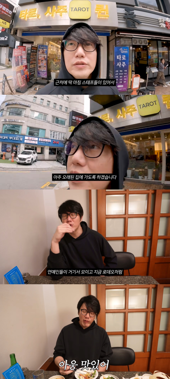 그는 "밥도 먹어야 하고, 근처에 마침 스태프들이 있어서 아주 오래된 식당에 가도록 하겠다. 썩 맛있는 집"이라며 단골 식당을 찾았다.