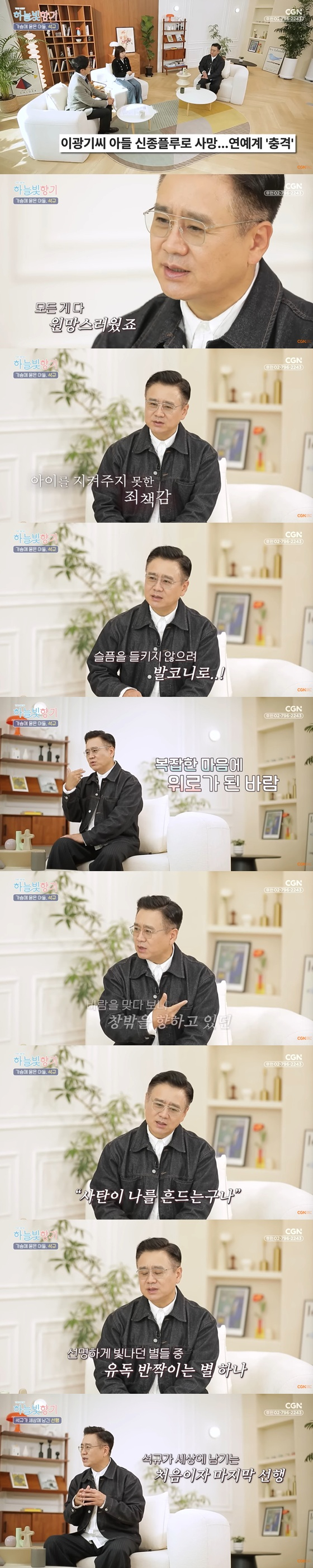 탤런트 이광기(57)가 큰아들 고(故) 이석규 군을 떠올렸다. 11일 유튜브 채널 'CGN'에는 게스트 이광기 편 영상이 공개됐다.