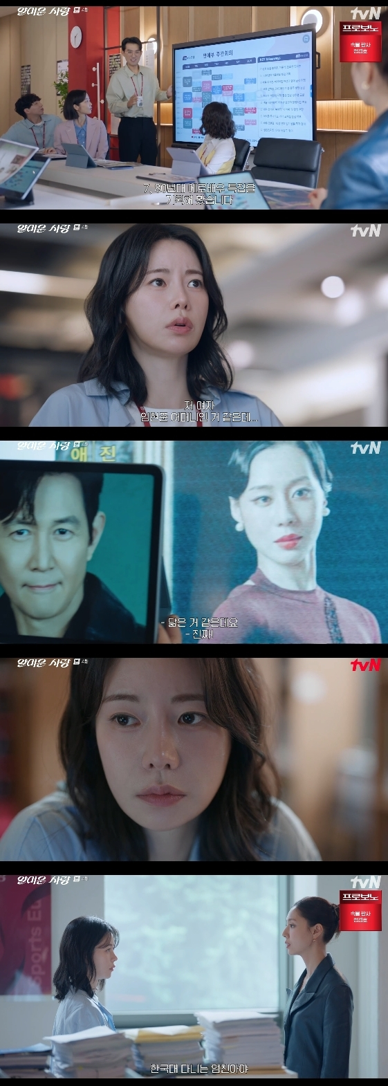 배우 임지연이 이정재 모친의 과거를 파헤쳤다. 11일 방송된 tvN 월화 드라마 '얄미운 사랑'에는 임현준(이정재 분)의 모친이 과거 잘나가는 에로배우라는 사실을 알게 된 위정신(임지연 분)의 모습이 그려졌다.