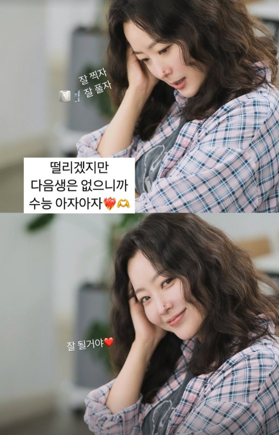 배우 김희선이 2026학년도 대학수학능력시험(수능)을 치르는 수험생들을 응원했다.김희선은 12일 자신의 SNS에 현재 자신이 출연 중인 TV조선 월화드라마 '다음생은 없으니까' 촬영 중인 사진을 게재했다.