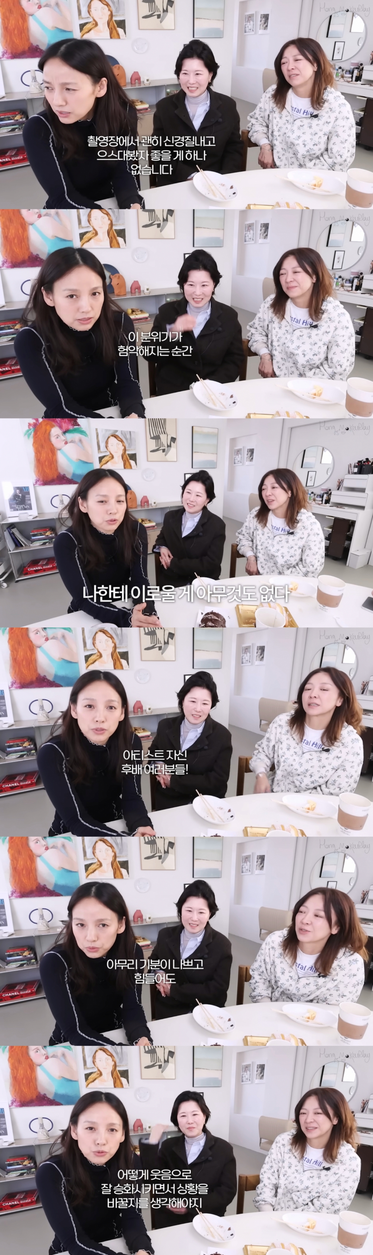 그러다 이효리는 "아니다. 나는 아무리 내가 힘들어도 모니터가 예쁘게 나오면 참는다. 아무리 눈물이 나고 피눈물이 나도 참는다"고 수습했다.그러면서 "촬영장에서 괜히 실경질 내고 으스대고 해봤자 좋을 게 하나도 없다. 분위기가 험악해지는 순간 내게 이로운 게 하나도 없다"고 강조했다.