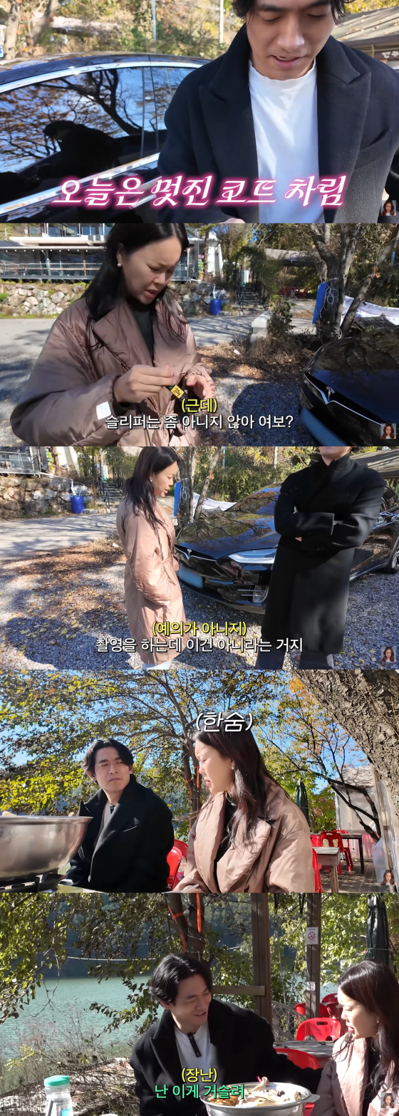 이날 백지영은 코트 차림에 슬리퍼를 신고 등장한 남편 정석원에게 "슬리퍼는 좀 아니지 않냐. 촬영하는데 이건 예의가 아니"라며 언짢은 티를 냈다.