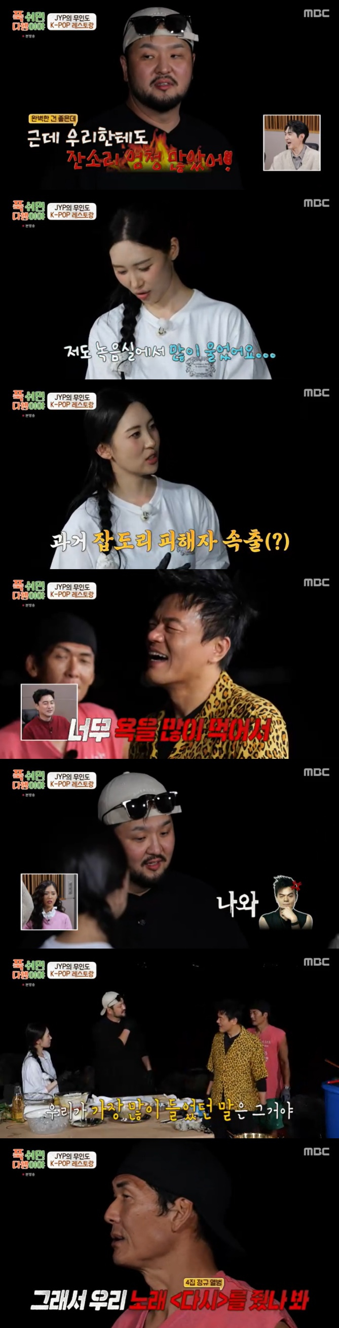 17일 방송된 MBC '푹 쉬면 다행이야'(이하 '푹다행')에서는 JYP엔터테인먼트 대표 박진영이 과거 소속사 식구였던 god 박준형, 손호영, 김태우, 원더걸스 출신 선미와 무인도 콘서트에 도전했다.
