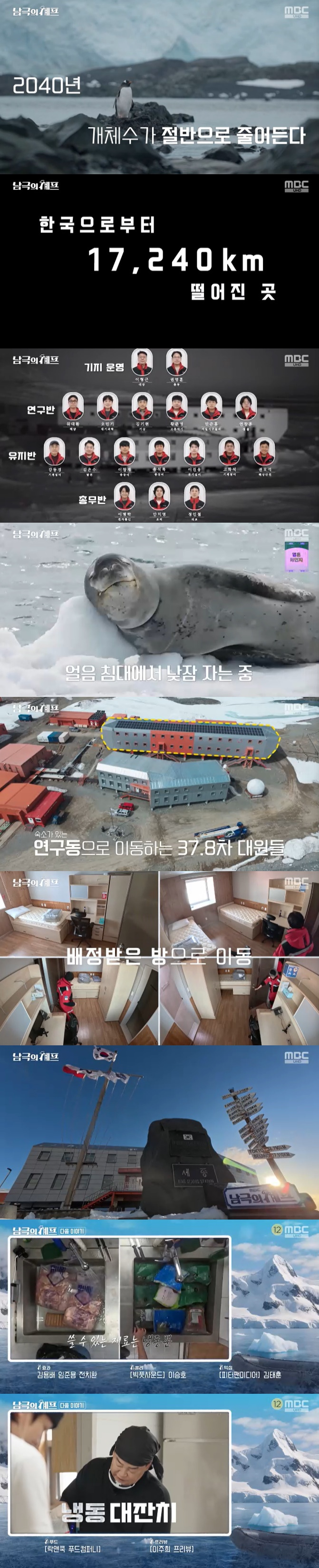 멤버들은 보트를 타고 남극세종과학기지에 도착했다. 이들은 보트를 타고 가며 지구온난화 현상에 빙벽이 심각하게 무너진 흔적을 발견했다. 남극에선 해수면 상승, 수온 저하, 염분 감소 현상이 갈수록 심해졌으며 2025년엔 남극 관측 사상 최고 기온을 기록하기도 했다. 이에 해조류 군락이 파괴되거나 크릴의 집단 폐사가 지속적으로 발생, 2040년 펭귄의 개체수는 절반으로 줄어들 거란 추측이 나오고 있다.