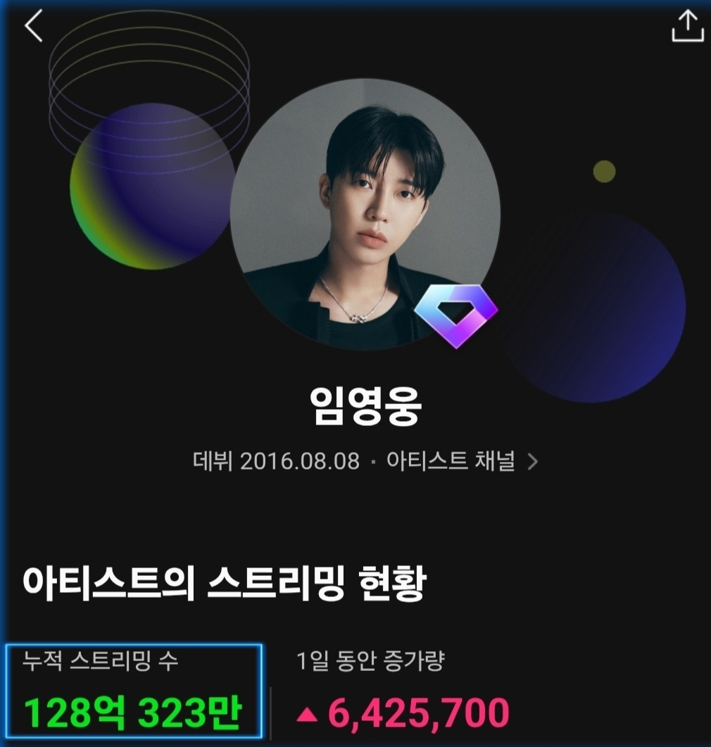 임영웅은 2024년 6월 18일 누적 스트리밍 100억 회를 넘어서며 '다이아 클럽' 아티스트에 이름을 올렸다. 임영웅은 '다이아 클럽'에 등극하며 글로벌 톱 인기 그룹 방탄소년단(BTS)과 어깨를 나란히 했다. 솔로 가수 1위 기록이다.