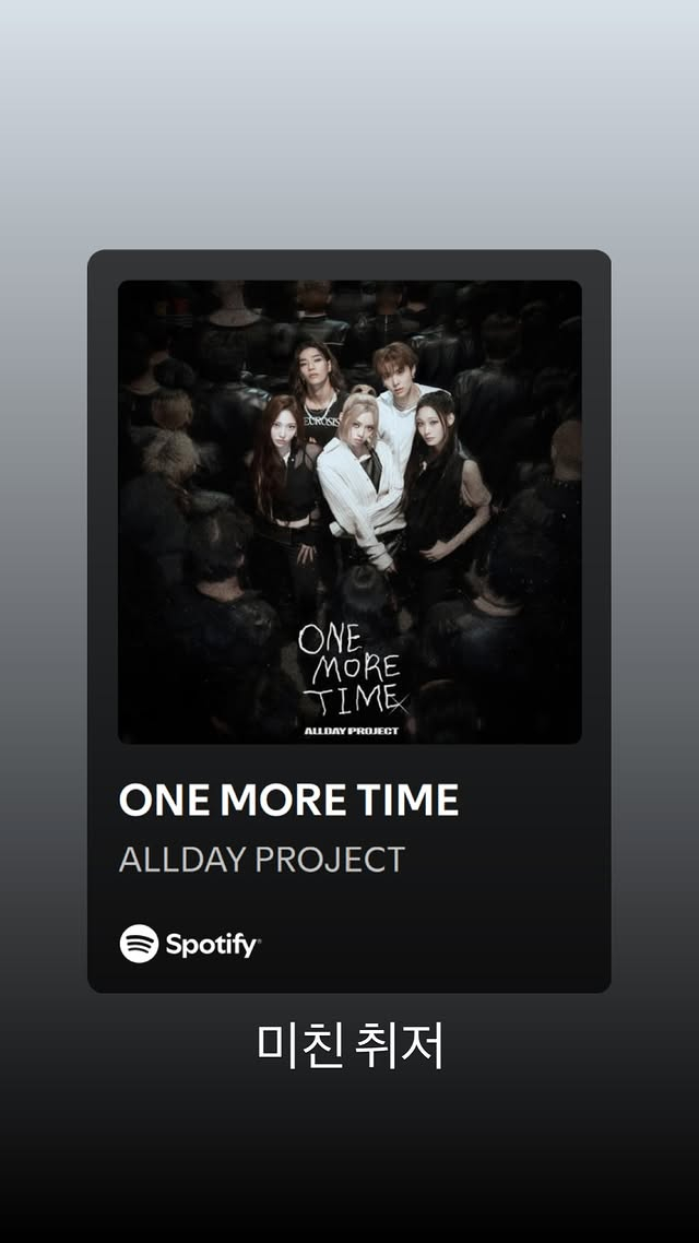 18일 정국은 개인 SNS에 "미친 취저"라며 올데이 프로젝트의 신곡 '원모어타임(ONE MORE TIME)' 앨범 커버를 게재했다.