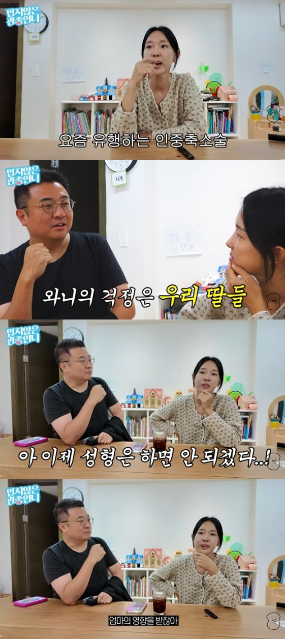 이지혜는 또 두 딸을 위해 성형을 중단하겠다고 선언해 시선을 모았다. 이지혜의 남편은 "내가 2주 전에 정확히 예언했다. 우리 와이프가 분명히 신경 쓸 거고 나는 우리 애들이 걱정된다"라고 말했다.