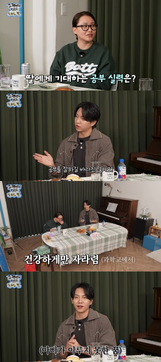 이날 이승기는 지난해 얻은 딸에 대해 언급하며 "공부를 잘하길 바라진 않지만, 과학고를 보내고 싶다"라고 밝혀 웃음을 자아냈다.
