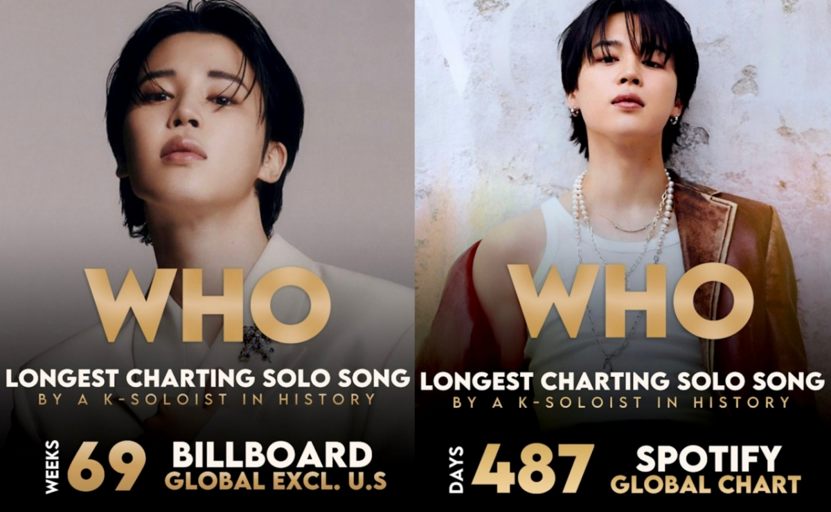 미국 음악 전문 매체 빌보드에 따르면 지민의 2집 'MUSE'(뮤즈)의 타이틀곡 'Who'(후)는 빌보드 '글로벌(미국 제외)' 차트에서 118위를 차지하며 69주를 보낸 최초이자 유일한 K팝 솔로곡이 되었다.