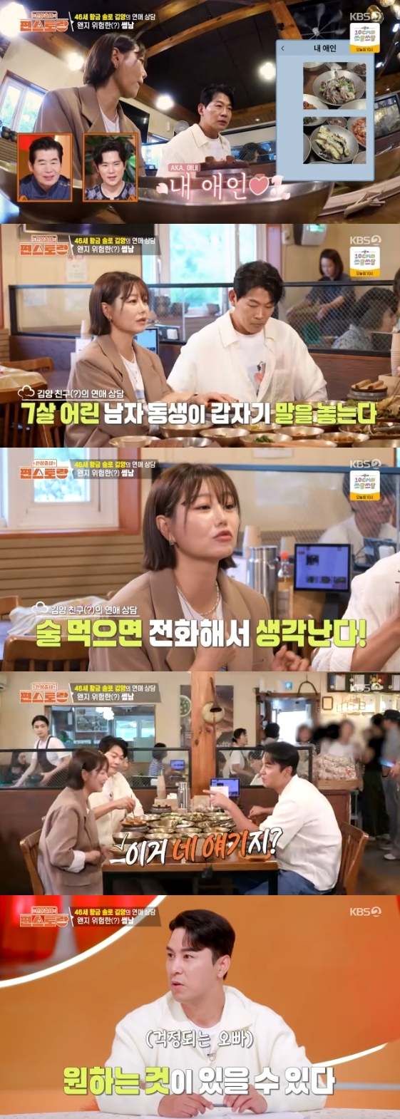 이에 김양은 "너무 부럽다, 이런 남자 만나면 너무 좋은데 5년째 연애를 쉬고 있다"며 "제 얘기는 아닌데..."라고 연애 상담을 시작했다.