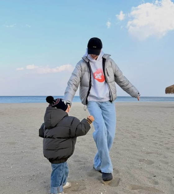 공개된 사진에는 가족들과 강원도 양양으로 여행을 떠난 손연재의 모습이 담겼다. 손연재는 드넓게 펼쳐진 양양 바닷가 앞에서 아들과 행복한 시간을 보내고 있다.