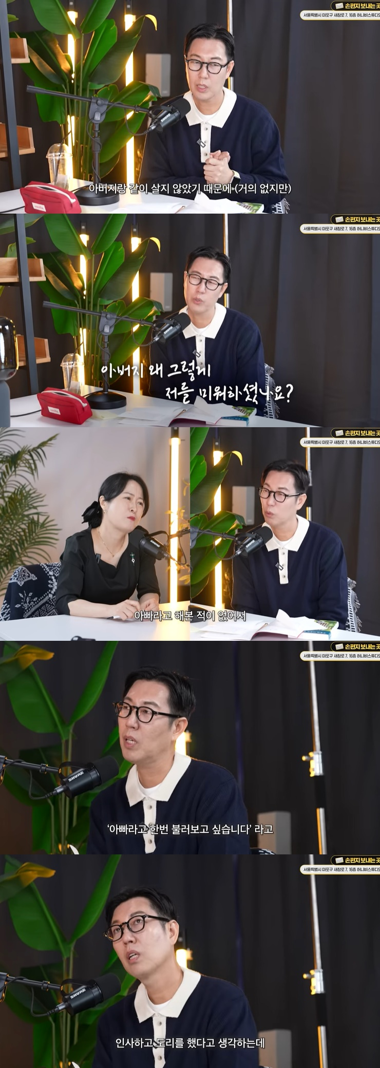 이를 읽은 김영철은 "저 같은 경우 사실 아버지가 3년 전 돌아가셨다. 고등학교 2학년 때 부모님이 이혼한 후 제가 엄마랑 계속 살아 아버지랑 같이 살지 않았기 때문에 아버지와의 추억이 없다"고 고백했다.