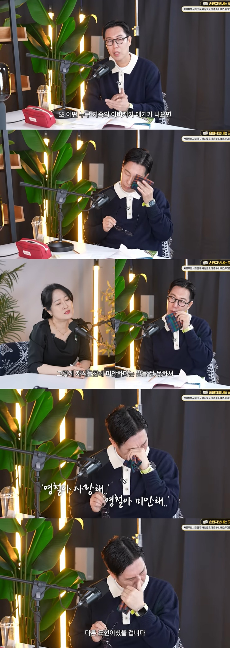 또한 김영철은 "전 '아버지'라고 부른 적이 없고 '아빠'라고 불러 본 적이 없다. 꿈에 나타나면 아빠라고 한 번 불러 보고 싶다고 하고 마지막 작별을 딱 했다"라며 "3년이 지났는데 함께 살진 않았지만 자식으로서 인사하고 도리를 했다고 생각하는데 오늘처럼 아버지 이야기가 불쑥, 또 어느 가족의 아버지 이야기가 나오면"이라며 눈물을 흘렸다.