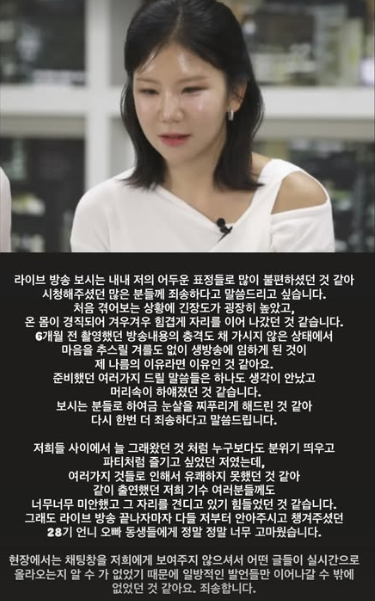 이어 "누구보다 분위기 띄우려고 파티처럼 즐기고 싶었는데 여러가지 것들로 인해 유쾌하지 못했던 것 같아 저희 기수 여러분들께도 너무 미안했다"라며 "현장에서 채팅창을 보여주지 않아서 실시간으로 어떤 글들이 올라오는지 알수 없었기에 일방적인 발언들만 이어나갈 수밖에 없었다"라고 거듭 사과했다.
