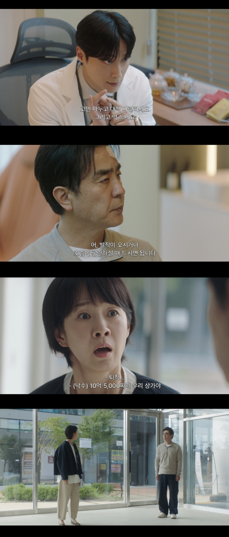 결국 김낙수는 자신이 매입했던 상가 102호에 위치한 정신과로 향했고, 나대룡(허남준 분)에게 공황장애 진단을 받았다. 진료실을 나오던 순간, 마침 부동산 직원과 마주쳤고, 그는 상황 파악도 없이 박하진 앞에서 "여기 102호 매입하신 분 아니세요?"라며 모든 진실을 폭로해버렸다.퇴직금 5억 원과 대출 5억 5000만 원까지 총 10억을 쏟아부어 상가를 샀다는 사실을 알게 된 박하진은 충격과 허탈함 속에 울부짖으며 김낙수의 이름을 부를 수밖에 없었다.