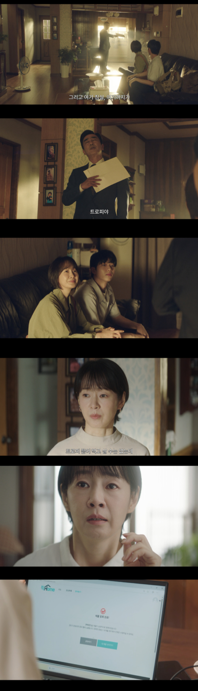 실제 극 말미에서 박하진은 인터넷 매물 사이트에 집을 등록하며 결국 '51년 인생의 트로피'를 팔기로 결심했다/