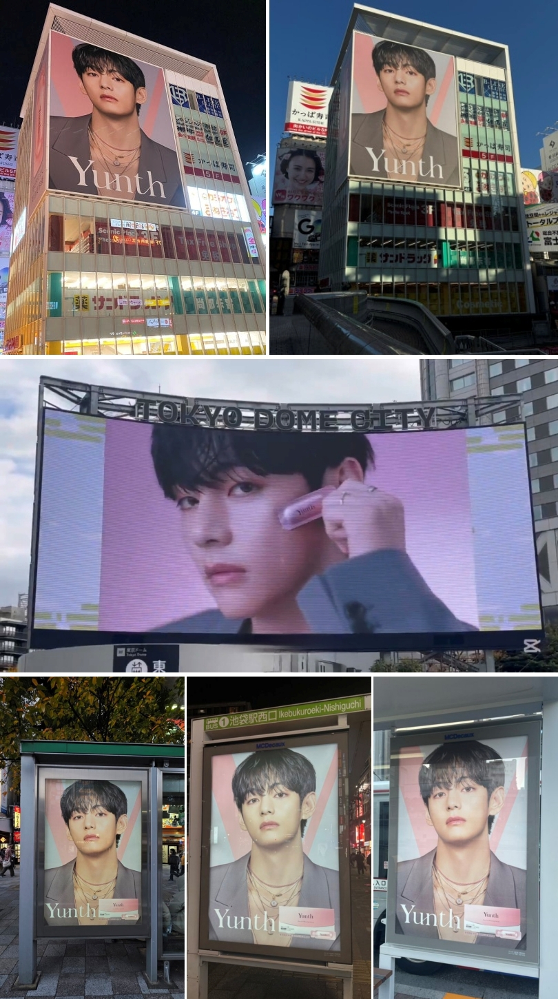 방탄소년단(BTS) 뷔가 3달 동안 일본 도쿄 최대 규모의 야외 아이스 링크를 화려하게 장식한다.뷔가 글로벌 앰버서더로 활동하고 있는 일본 뷰티 브랜드 윤스(Yunth)는 도쿄 미드타운의 아이스 링크와 컬래버레이션 프로젝트를 발표했다. 윤스는 "뷔의 특대 광고 등장! 겨울동안 윤스와 멋진 시간을 보내자"라는 문구와 함께 아이스 링크를 장식한 뷔의 캠페인 사진을 공개했다.