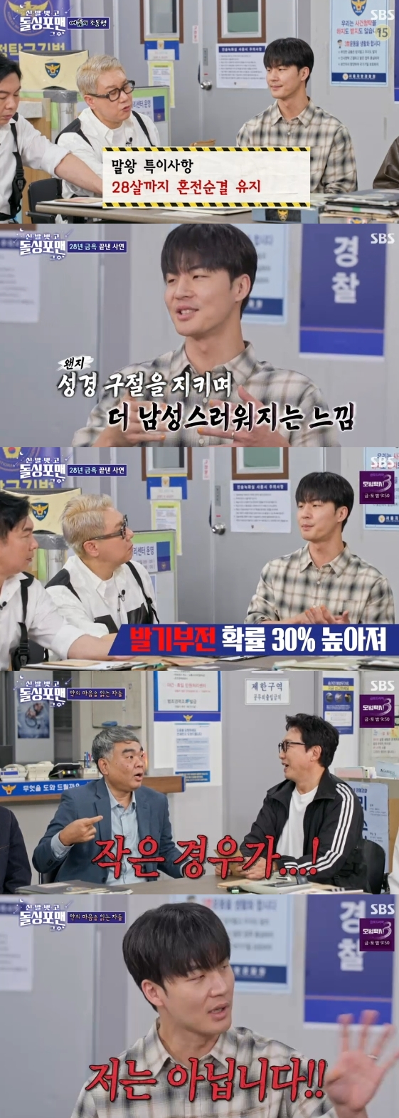 이날 말왕은 28세까지 혼전순결을 지킨 이유에 대해 "제가 모태 기독교 신앙이다. 그때 성경 구절에 꽂혀있었다. 혼전순결을 지킴으로서 더 남성스러워지는 느낌이었다. 욕구를 참으니까. 나는 남들과는 다르다고 생각했다"라고 밝혔다.