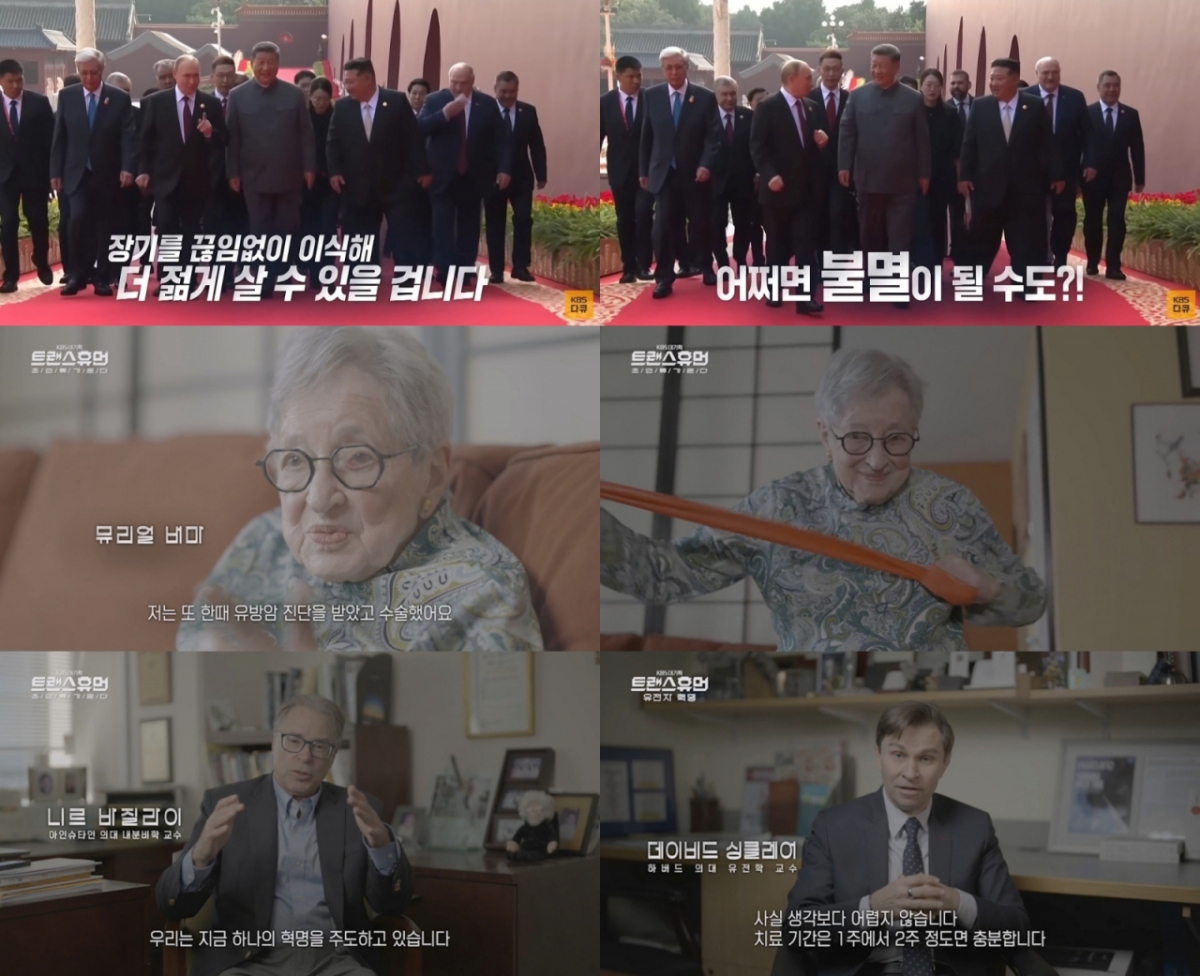 한편, 공개된 3부 예고편에는 중국의 시진핑, 러시아의 푸틴, 북한의 김정은이 담소를 나누는 장면이 포착됐다. 푸틴은 "앞으로 몇십 년 안에 생명공학이 계속 발전한다면 장기를 끊임없이 이식해 더 젊게 살 수 있을 것"이라고 말하며 '불로의 삶'을 꿈꾸는 듯한 세 정상의 의미심장한 대화가 이어진다. 본 방송에서는 세포의 시간을 복원하는 역노화 연구부터 이종 간 장기 이식, 유전자 교정 기술까지 세계적 석학들의 연구를 따라가며, 인간의 한계를 극복하려는 사람들의 영화 같은 이야기를 전한다.
