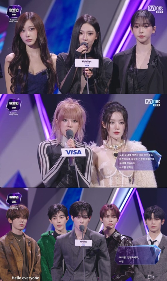 제로베이스원도 팬스 초이스상 주인공으로 호명됐다. 중국인 멤버 리키는 수상 소감에서 중국어로 "이번 사고를 당하신 모든 분들께 심심한 애도의 뜻을 밝힌다. 유가족 분들에게 작은 힘이 됐으면 좋겠다. 따뜻한 손길이 더 많이 가길 바란다"라며 "지금까지 저희를 지원해주신 제로즈 분들이 있어서 너무 다행"이라고 말했다.