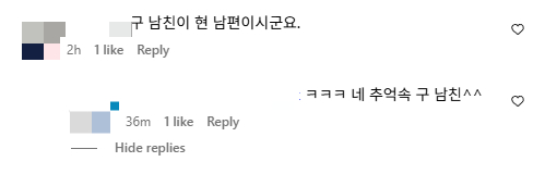 이에 한 네티즌이 "구 남친이 현 남편이시군요"라고 댓글을 달자 최희는 ㅋㅋㅋ 네 추억속 구 남친^^"이라며 남편과의 데이트임을 밝혔다.