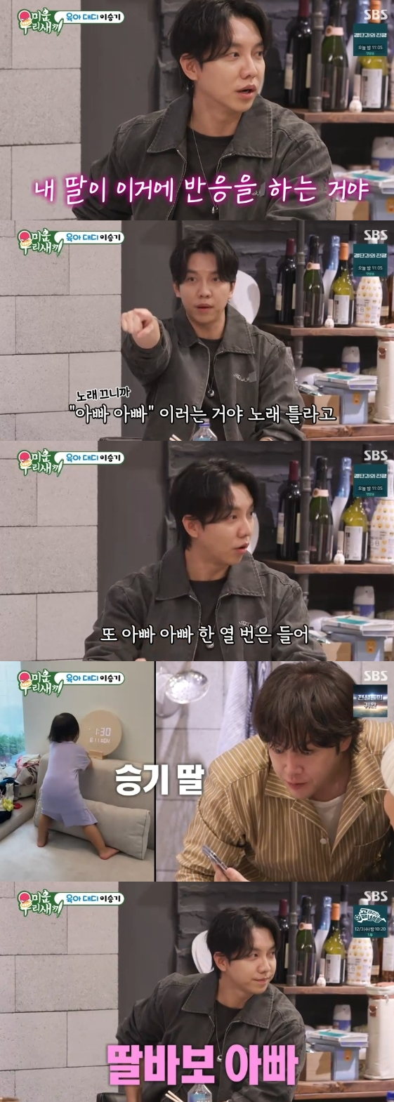 배우 이승기가 딸바보 면모를 드러냈다. 30일 방송된 SBS 예능 프로그램 '미운 우리 새끼'에는 '절친' 장근석의 작업실을 방문한 이홍기, 이승기의 모습이 그려졌다.