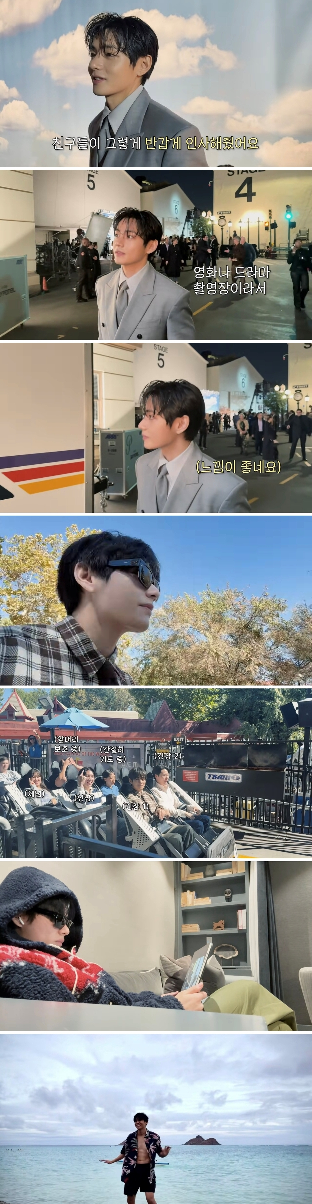 뷔는 행사 후 "오랜만에 친구들 많이 만나서..예전의 친구들이 그렇게 반갑게 인사해줬어요. 그래서 너무 기분이 좋았어요"라며 기쁜 표정을 지었다. 이어 촬영장을 둘러보면서 "아무래도 여기가 영화나 드라마 촬영장이라서 느낌이 좋네요"라며 감회에 젖었다. 행사가 진행된 파라마운트 스튜디오는 영화에 관심이 많고 연기에 대한 갈망이 많은 뷔에게 더더욱 특별한 장소이다.브이로그에서 뷔가 행사참석에 도움을 준 스태프들과 격의 없이 어울리며 일하는 모습도 인상적이다. 브이로그 영상이 끝나고 뷔는 "하와이 원해요?"라며 하와이 바닷가에서 복근이 살짝 보이는 댄스챌린지를 하는 영상을 올려 브이로그 2탄을 기대케 했다.