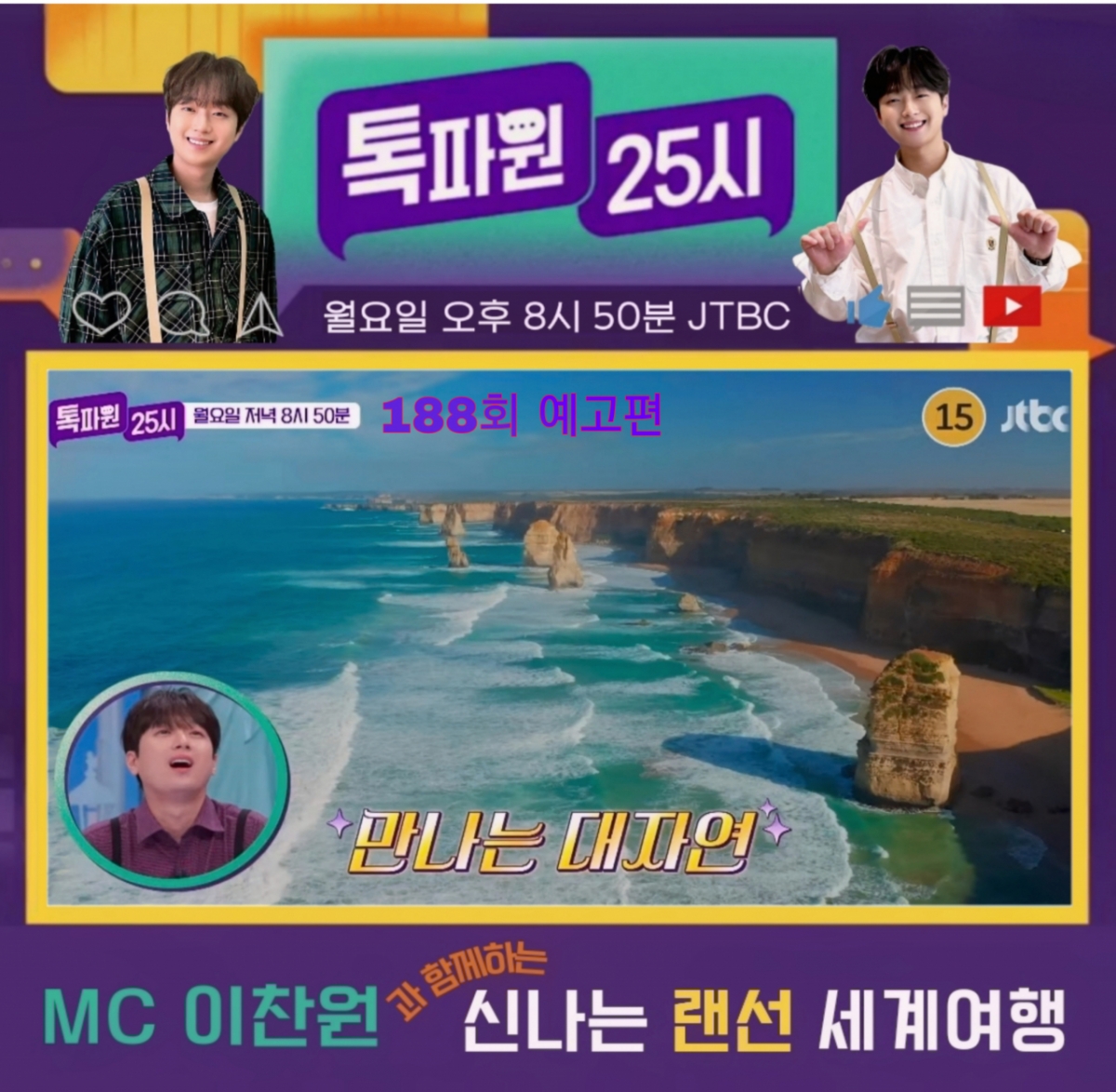 세 번째 랜선 여행은 멜버른 한 달 살기. 수상 바이크로 즐기는 도시의 풍경부터 죽기 전에 꼭 봐야 할 경관으로 탁 트인 해안 길을 따라 만나는 대자연의 비경을 본 이찬원은 "우와!"라며 탄성을 자아내며 대자연을 동경하는 모습을 보여 시청자들의 기대감을 높였다. 1일 오후 8시 50분 방송된다.
