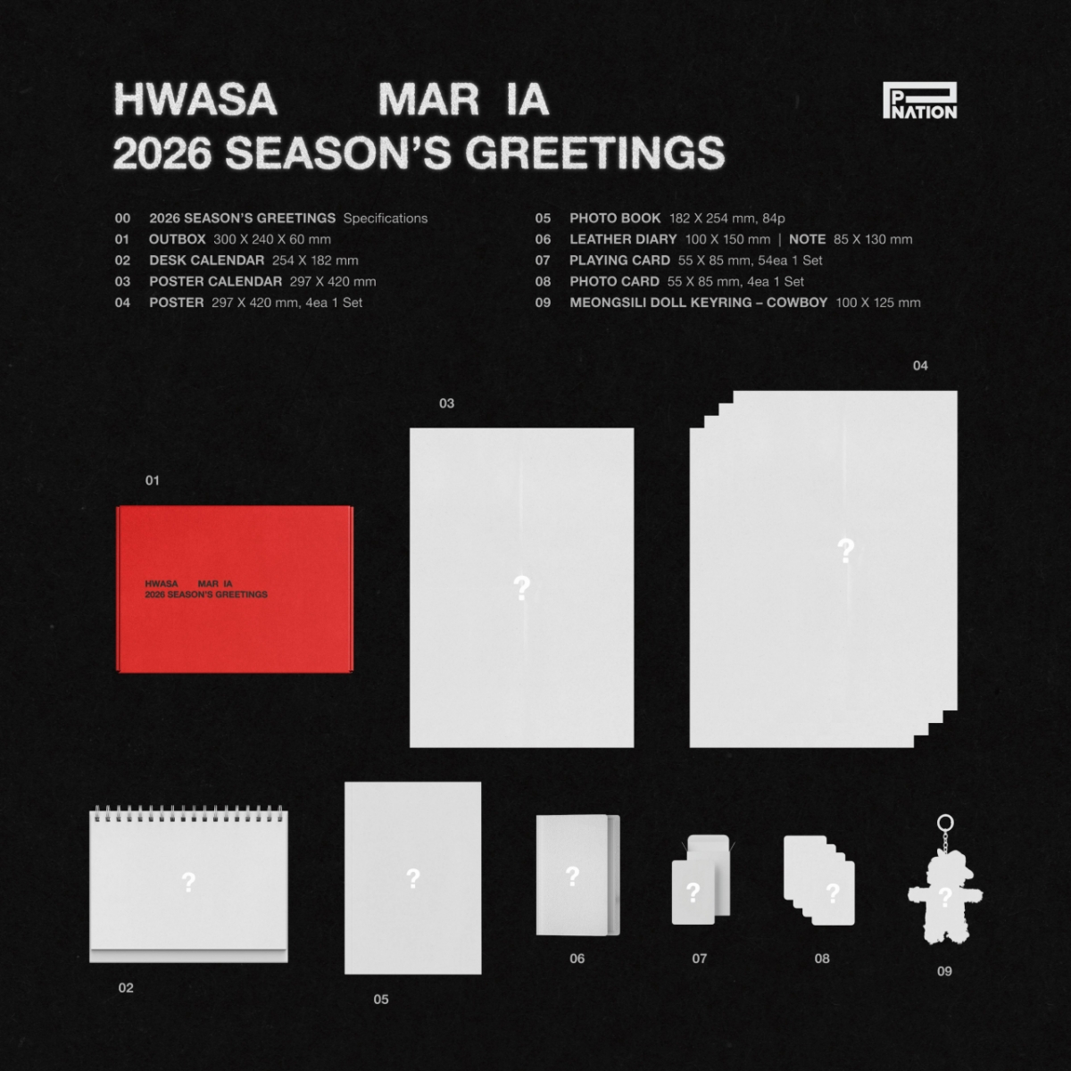 화사는 2일 오후 2시 화사 공식 팬 커뮤니티와 에버라인을 통해 'HWASA 2026 SEASON'S GREETINGS [MAR IA](화사 2026 시즌 그리팅 [마리아])'의 예약 판매를 시작했다.