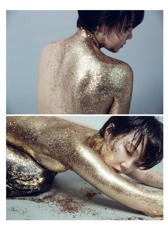 손수아는 앞서 상의를 탈의하고 금가루로 몸을 장식한 화보를 공개해 화제를 모았다.