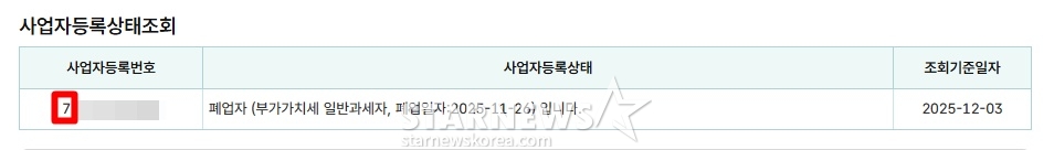 방송인 이경실의 아들 배우 손보승이 군 복무 중 영리활동 의혹을 받자, 운영 중이던 사업체를 폐업 처리했다.