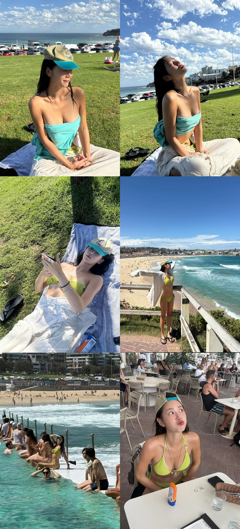 그는 연두색 비키니를 입고 호주 해변의 자유분방함을 즐기고 있었다. 최근 10kg을 감량해 49kg이라고 밝힌 소유는 군살 없는 몸매를 자랑했다.
