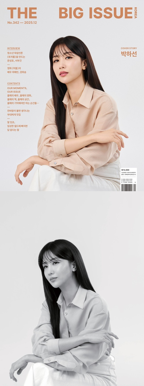 배우 박하선이 매거진 빅이슈코리아 12월호 표지를 장식했다. 빅이슈코리아는 최근 박하선의 화보 및 인터뷰를 공개했다. 그동안 대한적십자사, 월드비전 등 NGO(비정부기구)의 홍보대사로 활동하며 꾸준히 나눔을 실천해 온 박하선. 이번 화보로 또 한 번 선한 영향력을 발휘했다.