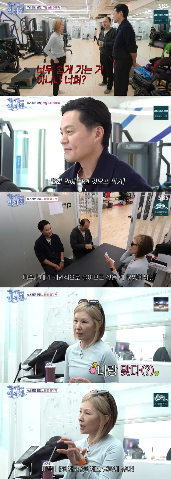 이미숙은 이서진의 답변에 "개띠는 나랑 맞다. 내가 B형이니까 A형이랑 궁합이 맞는다"라고 설명해 웃음을 자아냈다.