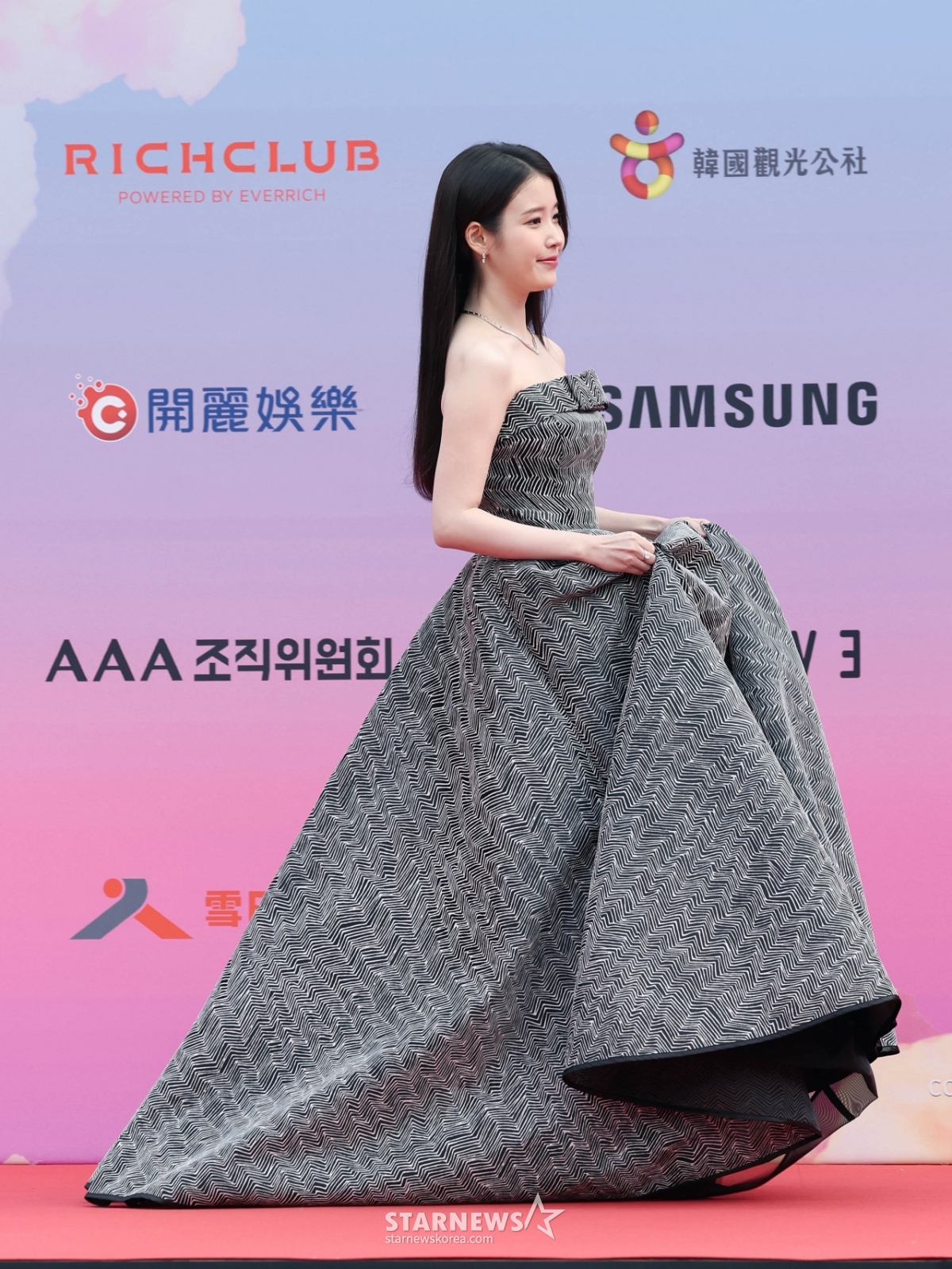배우 아이유가 6일 가오슝 내셔널 스타디움에서 진행된 스타뉴스 주최 '10주년 아시아 아티스트 어워즈 2025(10th Anniversary Asia Artist Awards 2025, '10주년 AAA 2025') 레드카펫 행사에 참석해 포즈를 취하고 있다. 12월 6일~7일 양일에 걸쳐 가오슝 내셔널 스타디움에서 펼쳐지는 '10주년 아시아 아티스트 어워즈 2025(10th Anniversary Asia Artist Awards 2025, '10주년 AAA 2025')'와 페스타 'ACON 2025'는 MTN(머니투데이방송)과 위버스(Weverse)를 통해 각각 TV와 온라인 스트리밍으로 생중계 된다. /2025.12.06